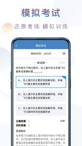 提供了全面的备考资源,根据自己的需求选择不同的考试科目,获取针对性的题库。应用内的题目涵盖了各个知识点,支持考生逐章练习,帮助他们攻克难点。准橙无人机考试还提供了仿真模拟题,真实还原考试场景,帮助考生在实际考试前进行充分准备。考生能够更好地理解和掌握无人机相关知识,提高考试的通过率。