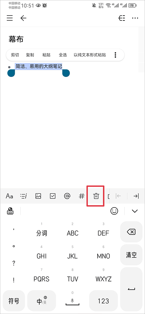 点击工具栏中的【垃圾桶】图标,即可将其删除。