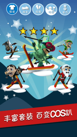 2、丰富多样的地图可供玩家选择,经典企鹅峰、师徒天竺行、神秘北极圈,不同的地图里的滑雪伙伴都不一样,和唐僧、驯鹿来一场不期而遇的邂逅吧!