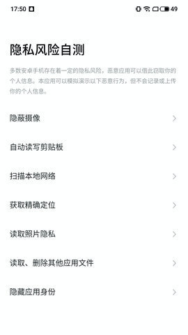 这款软件通过模拟调用敏感权限的恶意应用,轻松了解您的重要隐私可能会如何暴露。