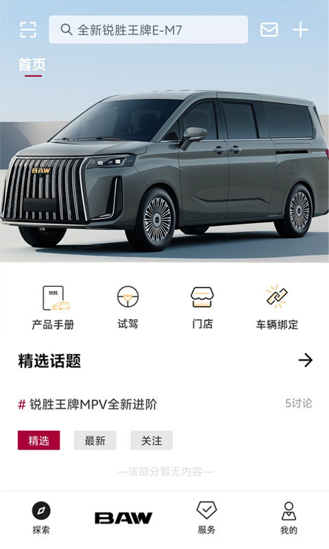 4、探索模块:通过这个模块获取行业资讯、车型推荐等信息,帮助他们做出更明智的购车决策。