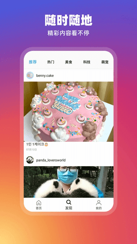 动态观看图像和视频,利用赞美和评论功能与感兴趣的内容对话。