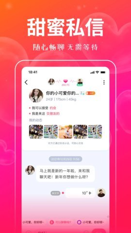 1、同城交友:交友的时候有一个实时的聊天交友平台,匹配同城交友用户的时候高效的进行匹配。