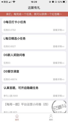 1、在首页查看最新的任务列表,点击进入感兴趣的任务,了解详细信息后进行选择。