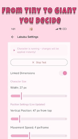 2、对已添加的宠物,可以调整其显示尺寸、在屏幕上的精确位置以及动画播放速度。