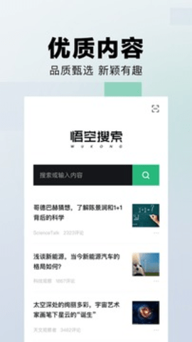 悟空搜索是一款集清爽浏览、专业资讯、海量内容等功能的搜索引擎,为用户打造更高品质的浏览体验。