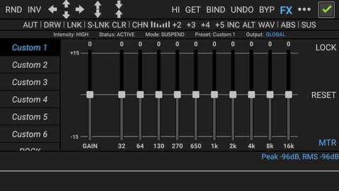 2、提供十个符合ISO标准的频率推子,每个推子对应一个倍频程,允许对不同频率范围进行非常精细的控制。