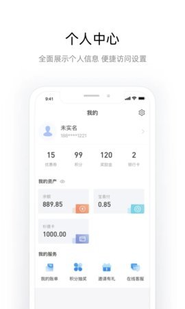 5、 生活小秘书,到账提醒、消费提醒、卡券积分智能提醒,随时随地账单查询,账户余额,消费记录全面展示