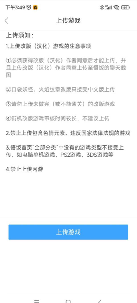 3、页面跳转完成后,即可在该页面中进行游戏的上传操作。