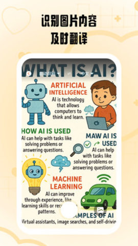 2、通过调用设备摄像头,软件能直接识别并翻译图片中的文字,省去了手动输入的繁琐步骤。