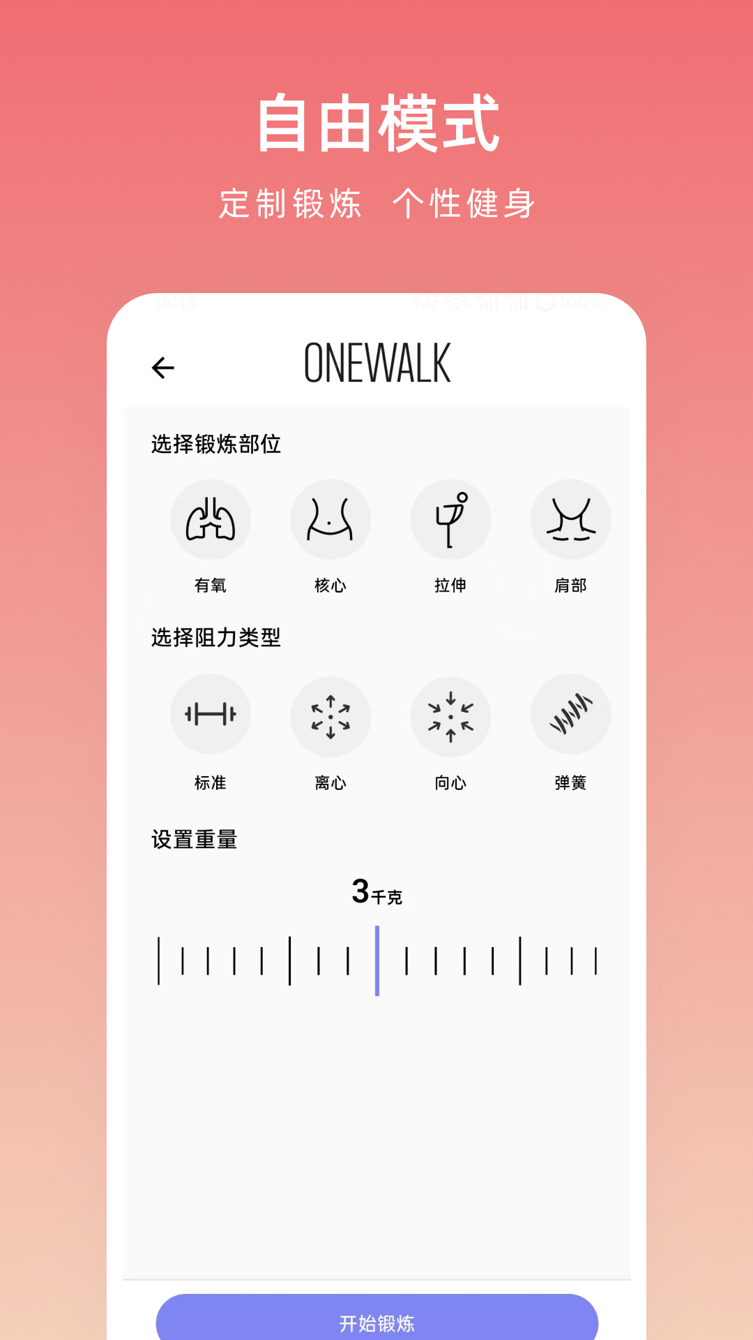 ONEWALK的界面设计注重用户的使用体验,操作流畅,帮助用户在锻炼过程中减少干扰,专注于每一次的训练。通过简洁的操作流程,让每位用户都能轻松上手,尽情享受运动的乐趣。