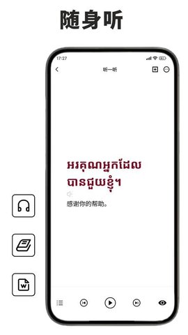 2、丰富的听力素材:提供多样的柬埔寨语言听力音频,包括单词发音和日常对话,随时在线收听,帮助你锻炼听力理解能力。
