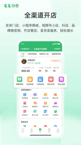 笔笔付橙是一款面向实体商业经营者的综合服务软件,软件整合了收银结算与店铺管理的多项日常操作,能够处理从商品上架到会员维护的连贯流程,后台系统可以同步记录不同渠道的销售数据与库存变动,为日常经营决策提供清晰的数字依据,从而帮助经营者更系统地梳理门店的运营环节。
