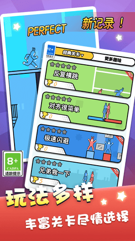 2、一个人操纵两个角色,你也可以和你的好朋友联网进行通关挑战,完成日常任务。