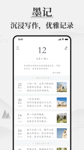 墨记app是一款非常精简的手机排版日记、笔记工具,您可以使用app进行短文写作,会议记录等操作,用起来非常顺手。墨记app拥有设计简洁、简单易用的特点,却拥有强大的功能。墨记采用安全加密传输云端存储,保障日记数据安全,仅自己可见。