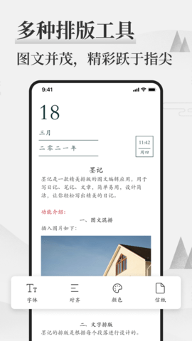 1、图文混排 简单好用的图文编辑功能,写出优雅的日记。