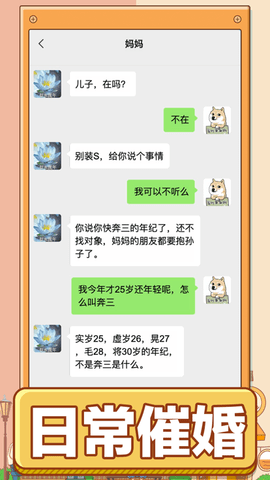 男人的反击是一款休闲类的娱乐游戏,游戏以简约风格打造了一个趣味十足的模拟玩法,包括趣味搞怪聊天、餐饮、催婚、车房等元素,深深的吸引着玩家,玩家需要开动自己的脑筋,才可以赢得这场智慧的较量,场景多变,游戏吐艳非常搞笑,感兴趣的玩家快来学一学怎么应对吧!