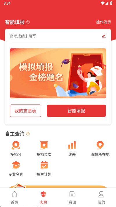 3. 使用志愿填报功能:在首页找到智能填报模块,输入高考成绩和志愿偏好,系统会为您推荐合适的志愿。