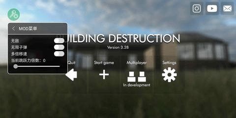 拆迁模拟器内置修改器是拆迁模拟器的一款内置菜单修改版本,玩家可以自由的开启无敌、无限子弹、多倍移速等特色功能,开启你的疯狂拆迁,看见不爽的房屋一锤子砸下去即可,游戏的玩法非常不错,物理引擎也非常真实,碎片掉落效果很赞。