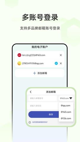 1、支持多邮箱账号登录,在一个平台上轻松管理QQ邮箱、163邮箱等主流邮箱,省去频繁切换的麻烦。
