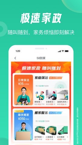 2、【服务多样】保洁保姆、清洗维修、搬家换锁,用58到家全搞定;