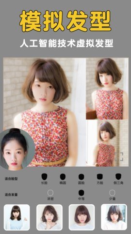 发型美美哒app是万熙科技推出的一款采用ai智能生存发型搭配的时尚生活软件,平台为用户提供各种各样的发型,让你在手机上选择自己合适的脸型。发型美美哒app精准测试出你属于什么脸型,在发型美美里都能找到适合自己发型,被匹配的每款发型都有详细与之匹配的发型信息,根据流行趋势分欧美发型排名和亚洲发型排名,有欧美和亚洲发型更新,有男生发型专属。