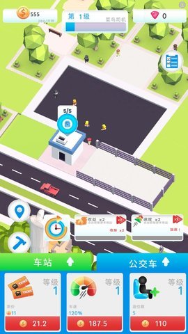 2、通过不断升级车站和车辆,玩家可以提升服务质量,吸引更多乘客,逐步建立自己的公交帝国。