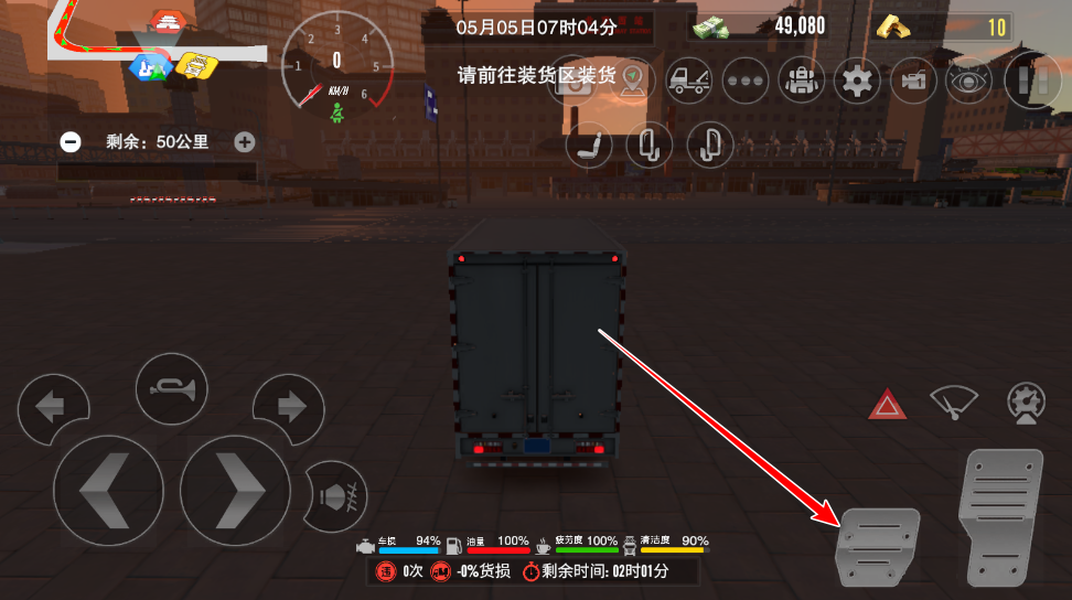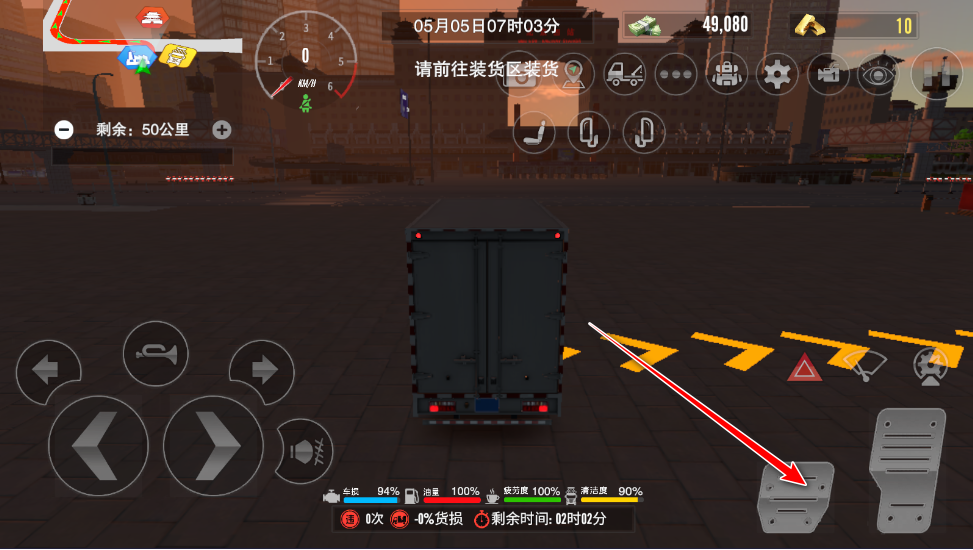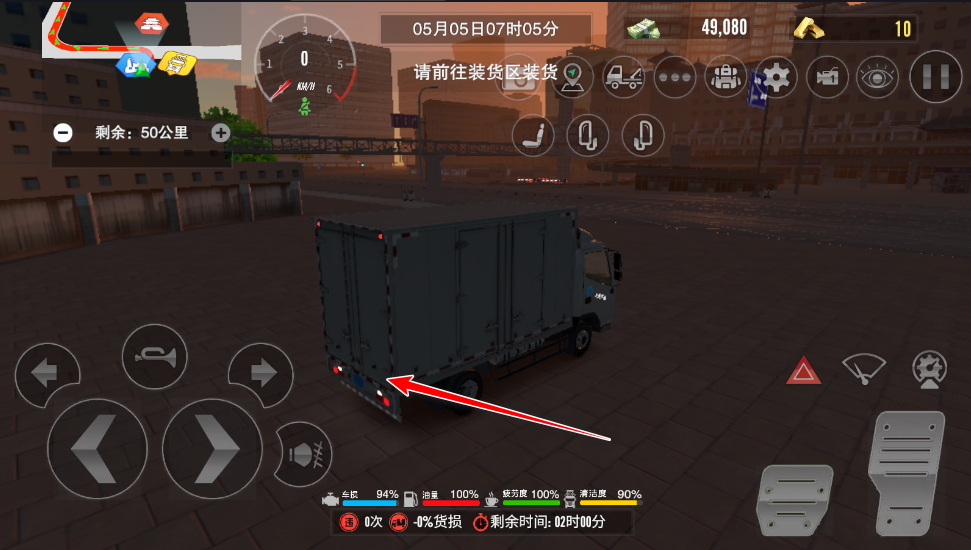 5、在运输过程中,玩家通过下方地图导航至运输终点,但在运输途中注意系好安全带(安全带时刹车上方的红色图标),并且不要违反交通规则、以及撞车等,不然不仅会返款扣钱,还会造成货损。