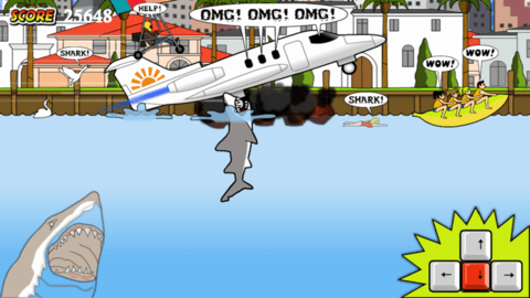 1、玩家将扮演一条饥饿的鲨鱼,在迈阿密海岸游荡,袭击天空中的船只和飞机。