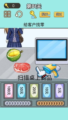 在游戏开始时,你将面对一位顾客,他们会把想要购买的商品放到收银台上。你的第一步是使用扫描仪扫描这些商品,系统会自动计算出总金额。接下来,顾客会给你一张钞票,你需要根据金额快速计算出应找的零钱,这个过程考验你的数学能力和反应速度。为了帮助你更好地完成任务,游戏中会提供一些提示和道具,帮助你更高效地找零。
