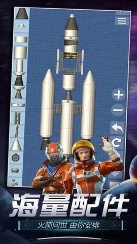 2、充满挑战性的玩法设定,设置一个专属的太空计划,内置众多航天飞机配件,开动脑筋进行组装,打造你的专属火箭。
