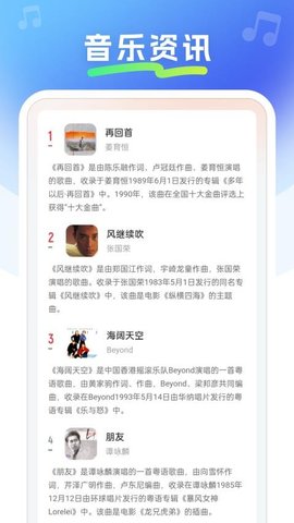 实时更新的音乐资讯涵盖新歌动态、歌手新闻等,让您在享受音乐的了解更多行业内的趣闻和热点,增添听歌的乐趣。
