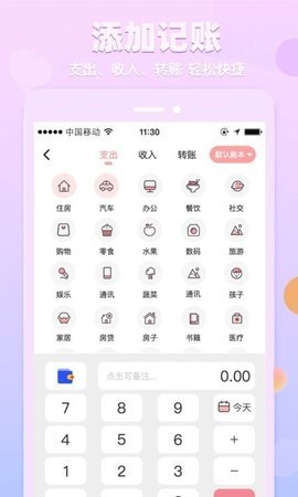 2、操作简单,一键记账,轻松管理,满足广大用户对记账的需求,培养用户的记账好习惯,做用户身边的理财小管家;