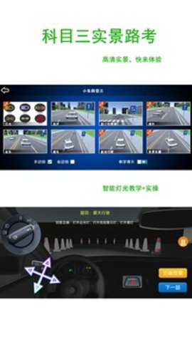 1、超真实的驾驶体验,能够系统的练习学车,全新的UI制作让你体验真实的驾驶模拟。