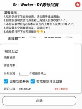 DY养号回复app是一款非常好用的抖音养号小工具,可以模拟人为操作,可以直接复制评论区的内容进行发送,我们好可以自行设置回复内容,当别人在你的视频下留下评论的时候,就可以自动进行评论回复了,让养号更加容易简单。