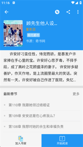 找到书籍后,点击进入书籍详情页面,您可以查看书籍的简介、评分和章节列表。若您决定开始阅读,只需点击开始阅读按钮即可。