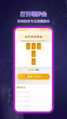 4、塔罗会结合紫微命理与塔罗牌,提供多维度的运势分析,涵盖感情、事业和财运等多个方面,帮助用户全面把握生活。