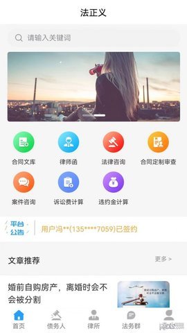 法正义是一款法律咨询平台,软件为广大想要咨询法律相关问题的用户提供了优质的咨询服务,用户可以选择免费咨询或者付费咨询。法正义app提供丰富海量专业优质精选的法律相关知识内容和政策信息,可以在线申请法律援助。