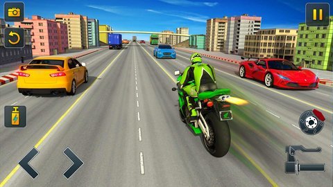 2、通过简单的虚拟按键操作,你就可以控制摩托车的左右移动,不断加速超越对手,非常过瘾。