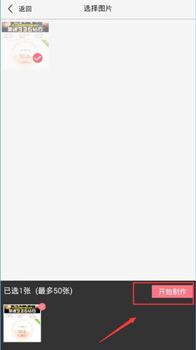 选择【批量水印】功能,可从手机相册中一次性挑选多张照片,点击【开始制作】;