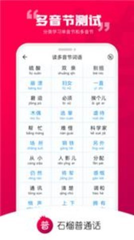 石榴普通话是一款非常好用的普通话学习软件,用户可以在软件中学习标准的普通话发音,提升你的说话技巧。丰富的课程满足用户的学习需求,在软件中找到你需要的学习资料进行学习,软件还为用户提供普通话水平测试,用户可以在软件中随时进行检测。