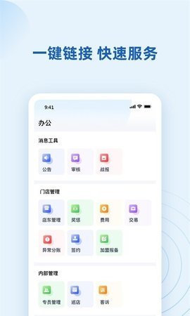墅智互联系统是一款综合管理工具,软件主要为从事行政行业的业务管理者提供了财务管理、门店管理等多项服务功能。墅智互联系统app使用方法简单,在这里拥有办公专区,可以随时查看消息通知,有门店管理、内部管理等专区,拥有的功能服务项目多,专为中墅地产人员设计的办公助手。