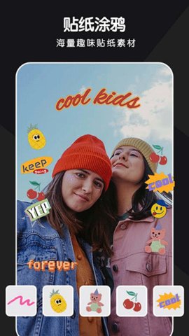 2、潮流贴纸:丰富多样的贴纸素材,轻松为你的照片增添趣味,让每一张照片都充满个性。