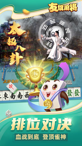 友旗麻将血流红中是一款优质的麻将游戏,游戏内置大量的特色玩法,玩家可以邀请你的好友一起游玩,组房开局。体验全新的麻将乐趣,万人在线随机匹配,一键秒开,无需等待,体验到麻将对战的刺激快感。