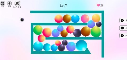 2、玩家需要操控带尖刺的球球去粉碎关卡中的所有气球,看似简单的操作,实则需要玩家合理控制球球飞出的角度和力度。