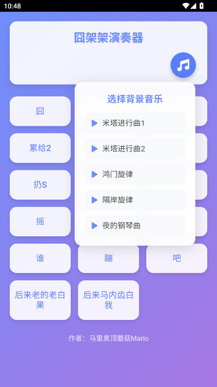 囧架架演奏器是一款充满创意的音频应用,专为安卓手机用户量身打造。巧妙地将网络流行语与音频技术结合,让用户能够轻松地创作出独特的搞笑音频作品。在朋友聚会时,你用将囧架架的魔性音效与背景音乐完美融合,瞬间点燃全场气氛。每个人都可以成为音频创作达人,分享自己的创意与欢乐。