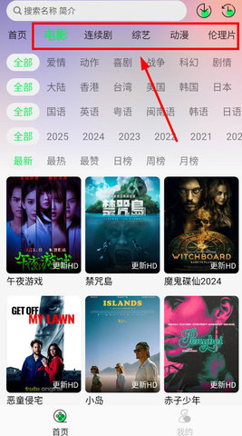 3、如果想要查找特定类型的影片,可以通过左滑切换不同的类型,快速定位。
