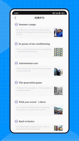 3、经典外刊阅读:精选英语经典外刊资源,自由阅读,学习外刊解读方法,提升自己的英语阅读能力,拓宽国际视野。