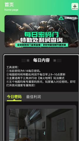 3、三角洲密码门助手采用极简设计风格,功能模块分类清晰,即使是新手玩家也能迅速上手,毫无门槛。