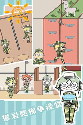 1、游戏的画风采用了鲜艳的卡通风格,充满了幽默感,让玩家在紧张的军训中感受到轻松愉快的氛围。